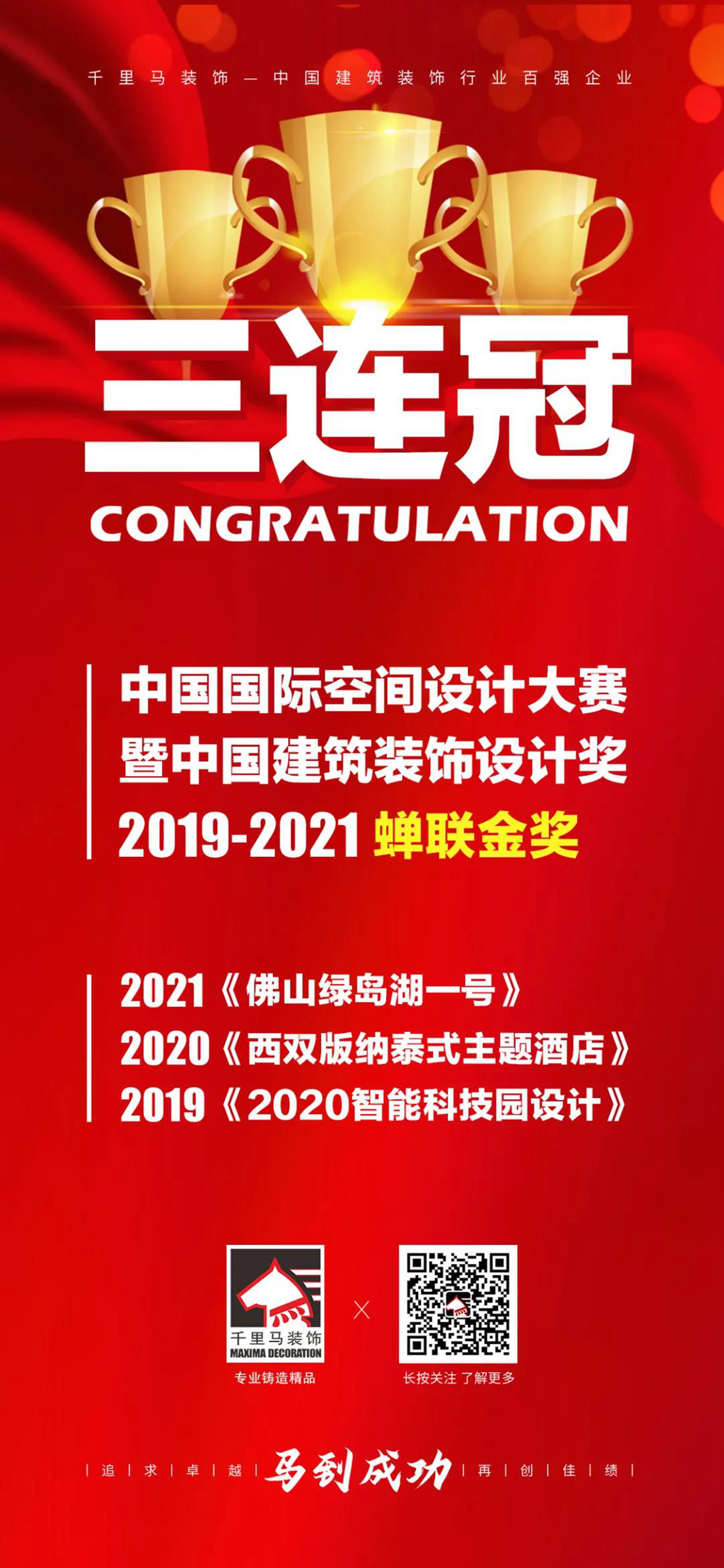 至此,千里馬裝飾集團(tuán)已連續(xù)三年斬獲該大賽的最高榮譽(yù)“金獎(jiǎng)”,這是對(duì)千里馬裝飾集團(tuán)實(shí)力的最好詮釋。多年來,千里馬裝飾集團(tuán)不斷加強(qiáng)人才隊(duì)伍建設(shè),不斷深化裝飾設(shè)計(jì)水平。未來,千里馬裝飾集團(tuán)將繼續(xù)秉承“致力于改善人類工作、生活環(huán)境”的使命,不斷加大技術(shù)研發(fā)和人才平臺(tái)建設(shè)的力度,爭(zhēng)取更大貢獻(xiàn)與榮譽(yù)。